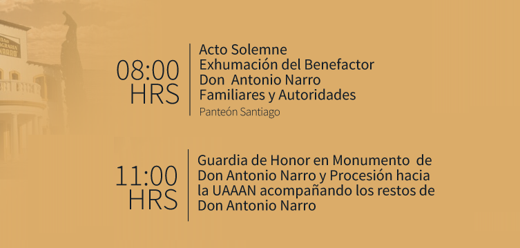 « Todos los Eventos Este evento ha pasado. Exhumación del Benefactor Don Antonio Narro 3 marzo 2023 @ 8:00 am - 12:30 pm « Conferencias Eventos: Artísticos, Culturales, Conferencias y Deportivos » Añadir al calendario Google Calendar iCalendar Outlook 365 Outlook Live Detalles Fecha: 3 marzo 2023 Hora: 8:00 am - 12:30 pm Local Panteon Santiago – Rotonda de los hombres ilustres Calz Francisco I. Madero Saltillo, Coahuila 25000 México + Google Map
